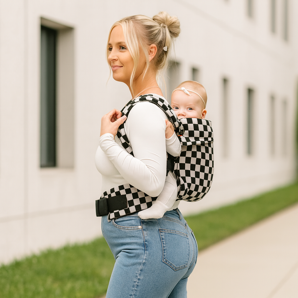 In the newborn stage, the inward-facing position promotes closeness and supports the baby’s delicate head and neck. Once they gain strength and control, transition to the outward-facing position so they can explore their surroundings with confidence - all while staying safely connected to you.
